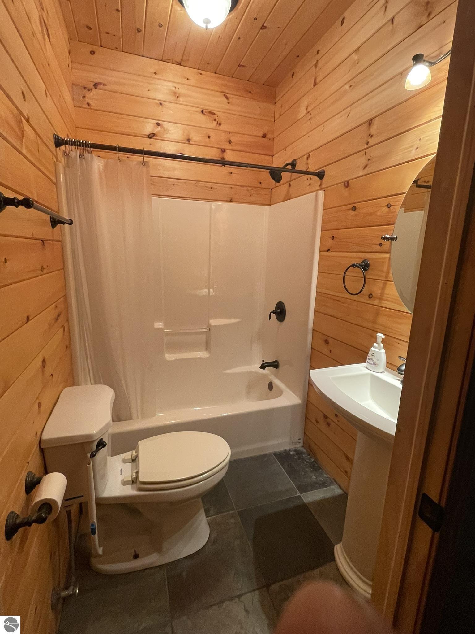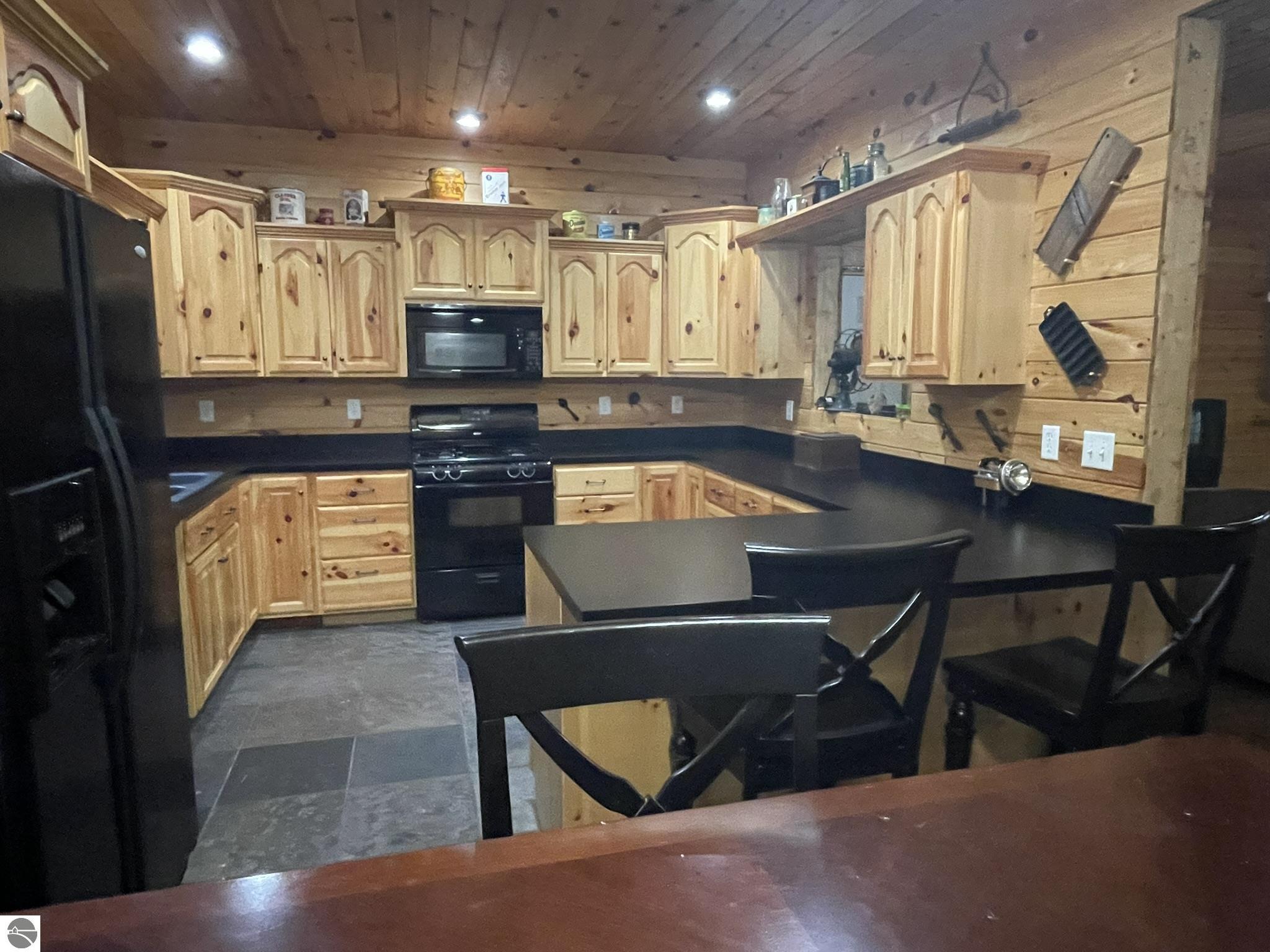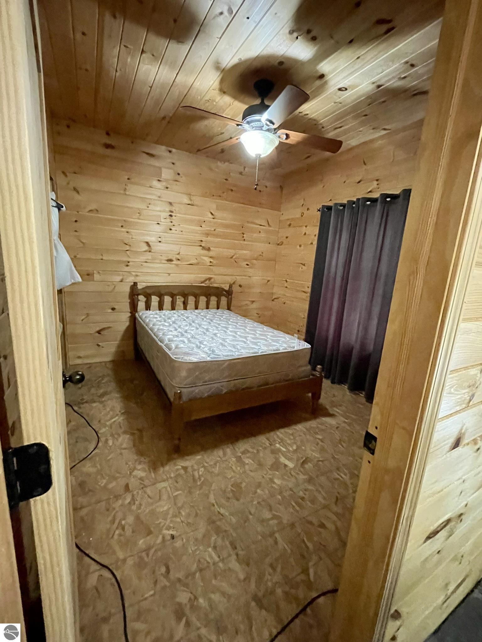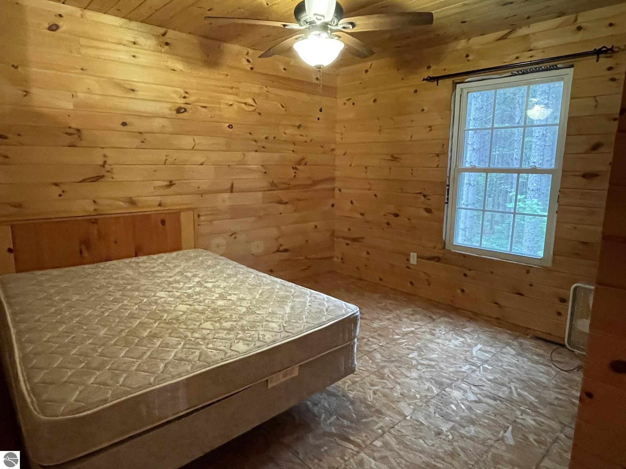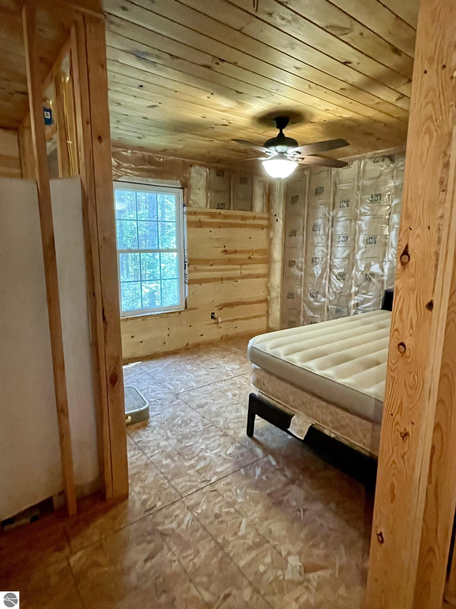Nestled in 5 acres of pines is a private setting for this well constructed home needing to be finished. Construction started in 2007 with quality Materials such as tongue and grove pine on walls and ceilings. Oil-rubbed bronze light fixtures, faucets, door hands and ceiling fans. Kitchen and bathrooms feature custom made Amish cabinets and slate tile floors. Main level is living room with Antique wood burning pot belly stove, kitchen and dining, bedroom and full bath. This level is finished except for living room and bedroom flooring and some trim. Upper level has 3 BR and 2 bath with bonus room over the garage It has framing, insulation, most exterior walls tongue and groove wood, plumbing and wiring in place. Primary bath is finished. Some materials on site. Well & septic are in. Could live on site and finish it up. Has furnace & water heater. Attached garage is insulated and has washer and dryer. Selling as-is with furnishings. Great location near the Betsie River, Crystal Mountain for golf and skiing, Betsie Valley Bike trail, snowmobile trails and thousands of acres of state land and trails.