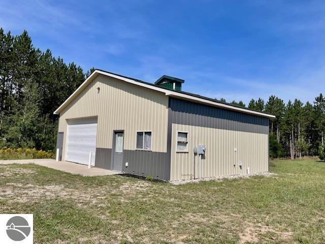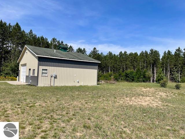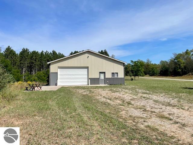 An outdoor enthusiast’s and tinkerer’s dream! This 30×40 pole building is finished inside, a well and septic are installed, and a full camper hookup is available at this 2-acre property along the Benzie-Manistee snowmobile/ATV trail. The insulated, paneled and heated 29×28 shop area is brightly lit and includes an exhaust fan for ventilation and a new 7500 BTU furnace. There is room for taller projects and vehicles, with 12 ft side walls and a 10 ft door with opener. A 14×8 heated, carpeted office area could double as a bunk room, and the bathroom includes a shower. No need to rough it if you are camping or spend time at the laundromat. There is a washer/dryer hookup in the 11×9 utility room with a utility sink. Stash your gear in the extra storage located above this area. Easy access to M-115 and just minutes to Crystal Mountain resort for golf and skiing. Close to the Betsie River for fishing and kayaking and near hundreds of acres of state land. * Seller in the process of having a new metal roof installed!!*