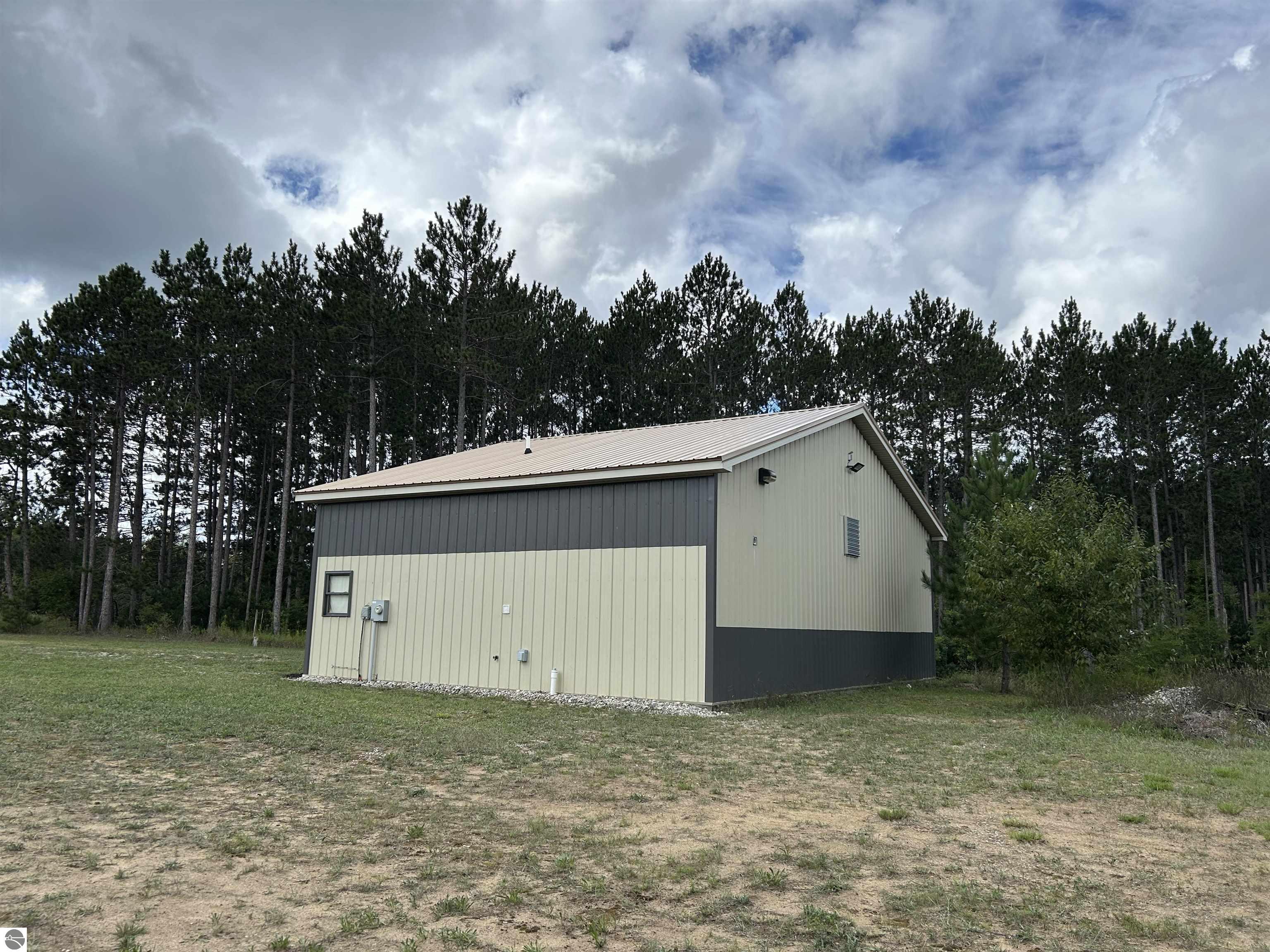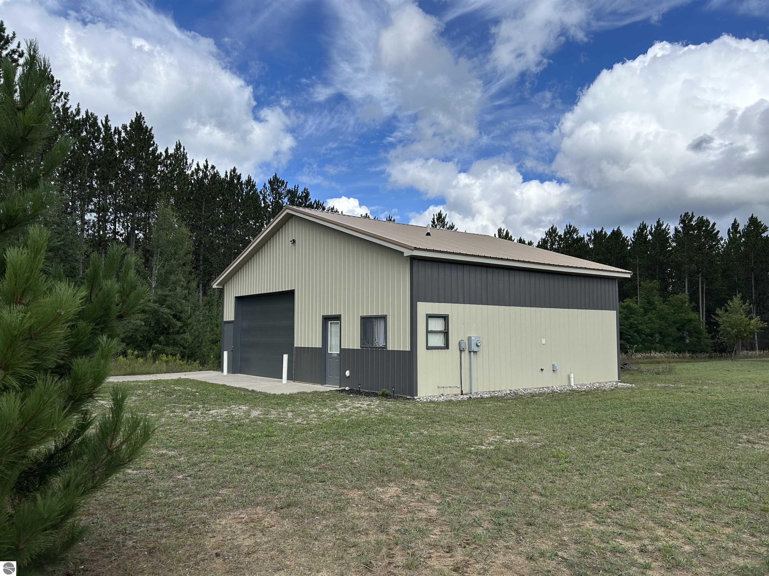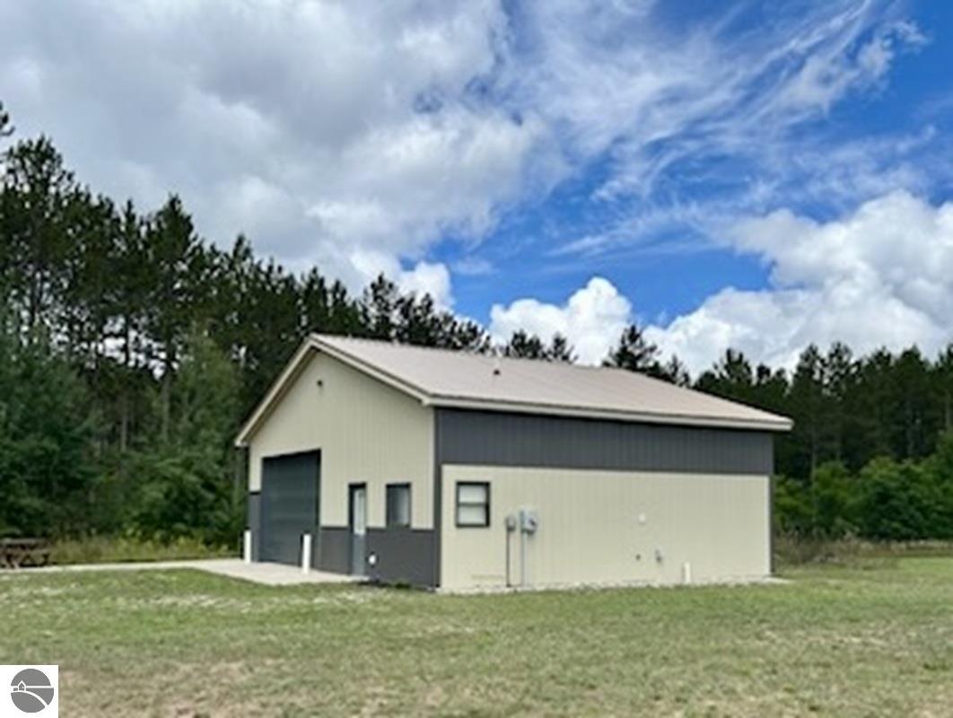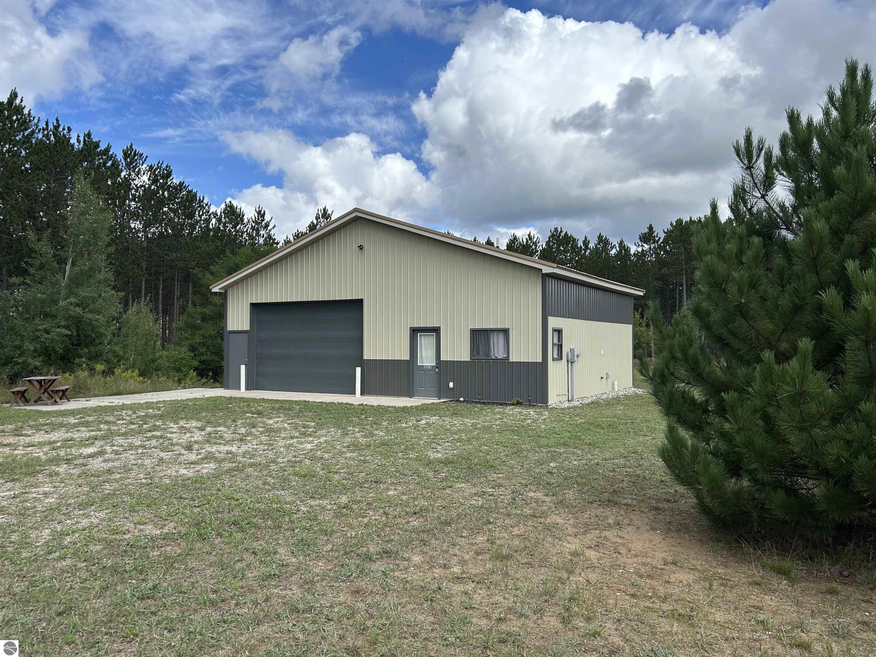 An outdoor enthusiast’s and tinkerer’s dream! This 30×40 pole building is finished inside, a well and septic are installed, and a full camper hookup is available at this 2-acre property along the Benzie-Manistee snowmobile/ATV trail. New metal roof 2025. The insulated, paneled and heated 29×28 shop area is brightly lit and includes an exhaust fan for ventilation and a new 7500 BTU furnace. There is room for taller projects and vehicles, with 12 ft side walls and a 10 ft door with opener. A 14×8 heated, carpeted office area could double as a bunk room, and the bathroom includes a shower. No need to rough it if you are camping or spend time at the laundromat. There is a washer/dryer hookup in the 11×9 utility room with a utility sink. Stash your gear in the extra storage located above this area. Easy access to M-115 and just minutes to Crystal Mountain resort for golf and skiing. Close to the Betsie River for fishing and kayaking and near hundreds of acres of state land. * Seller in the process of having a new metal roof installed!!*