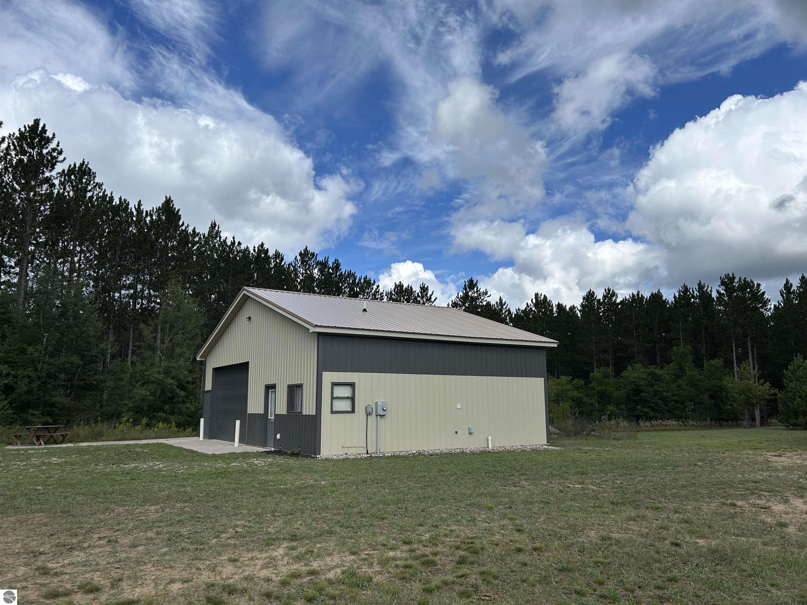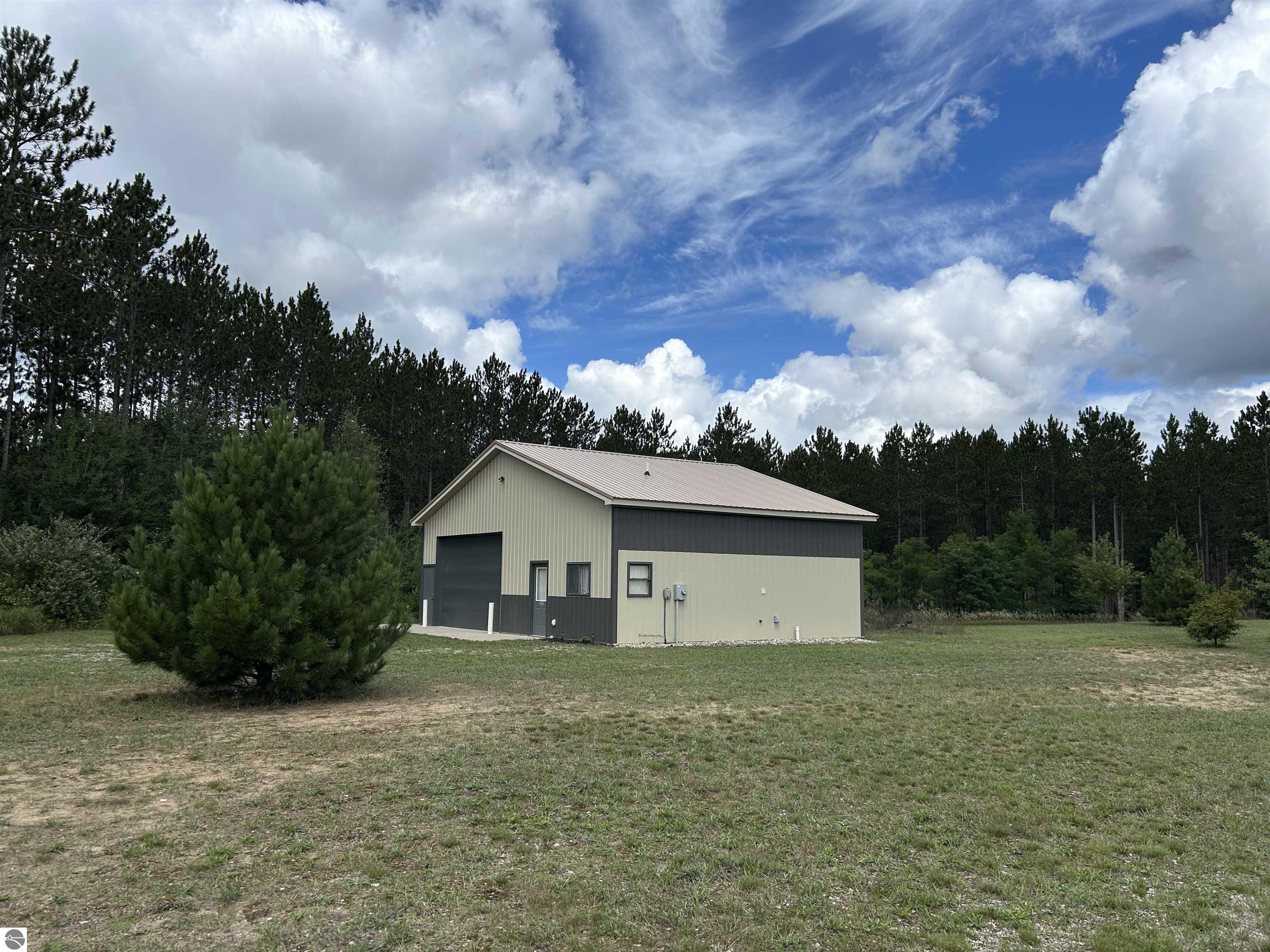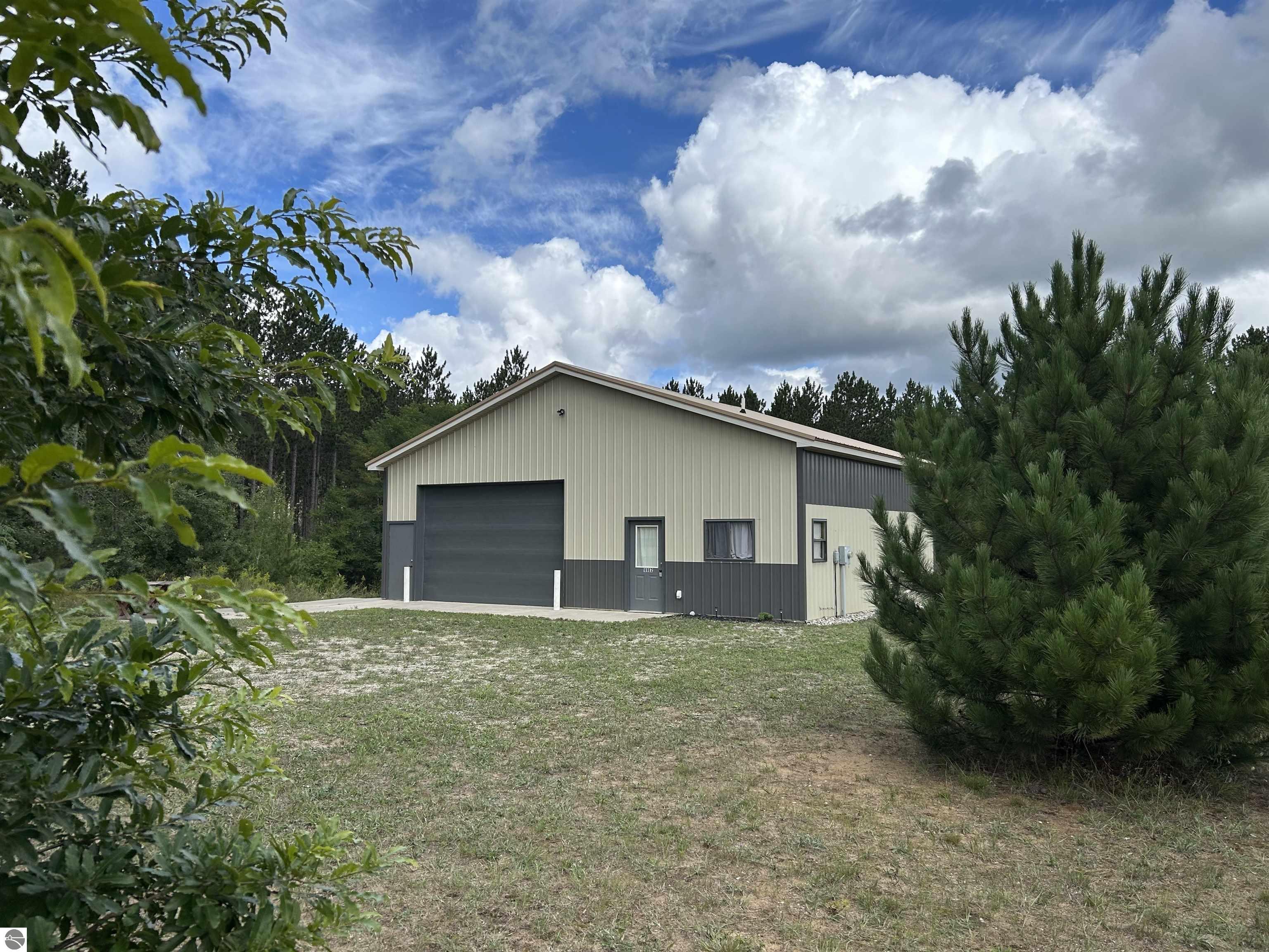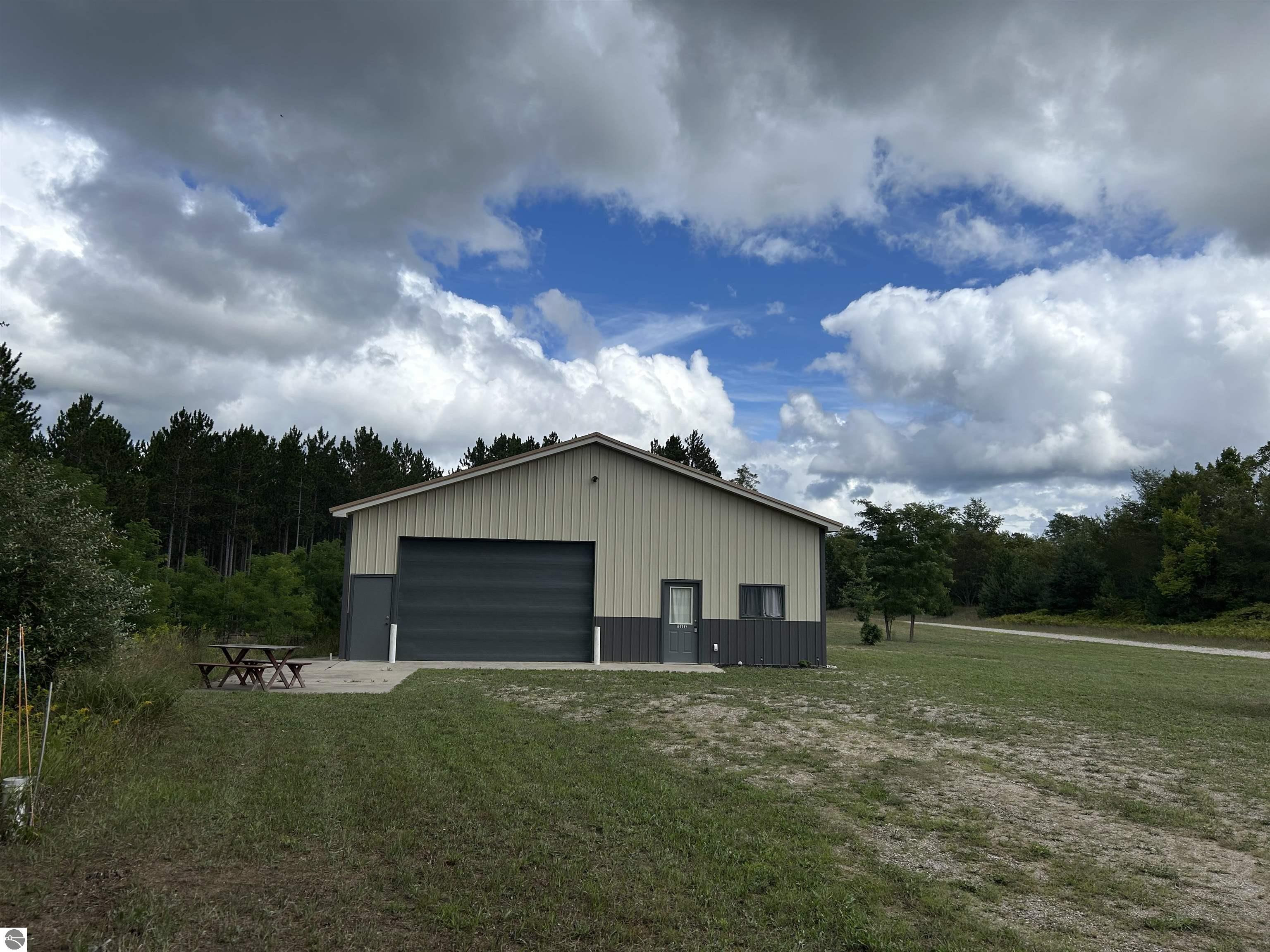 An outdoor enthusiast’s and tinkerer’s dream! This 30×40 pole building is finished inside, a well and septic are installed, and a full camper hookup is available at this 2-acre property along the Benzie-Manistee snowmobile/ATV trail. New metal roof 2025. The insulated, paneled and heated 29×28 shop area is brightly lit and includes an exhaust fan for ventilation and a new 7500 BTU furnace. There is room for taller projects and vehicles, with 12 ft side walls and a 10 ft door with opener. A 14×8 heated, carpeted office area could double as a bunk room, and the bathroom includes a shower. No need to rough it if you are camping or spend time at the laundromat. There is a washer/dryer hookup in the 11×9 utility room with a utility sink. Stash your gear in the extra storage located above this area. Easy access to M-115 and just minutes to Crystal Mountain resort for golf and skiing. Close to the Betsie River for fishing and kayaking and near hundreds of acres of state land. * Seller in the process of having a new metal roof installed!!*